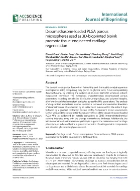 Received: April 9, 2024 Keywords: Cartilage repair; Porous microspheres; Dexamethasone; PLGA porous