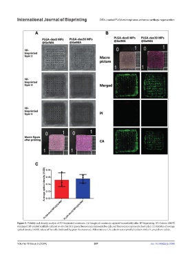 Figure 9. Viability and density analysis of 3D-bioprinted constructs. (A) Images of constructs captured immediately after 3D bioprinting. (B) Calcein AM/PI