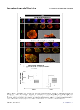 reconstitute the surface of the constructs, where stained cell distribution can be observed from a 3D perspective. (C) Quantification of Nestin and MAP-2 +
