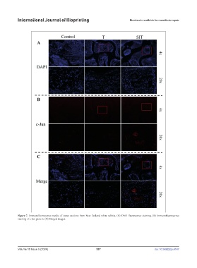 Figure 7. Immunofluorescence results of tissue sections from New Zealand white rabbits. (A) DAPI fluorescence staining. (B) Immunofluorescence