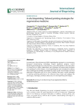 Keywords: Bioprinting; In situ bioprinting; Tissue regeneration; Bioinks;