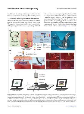 Figure 4. Minimally invasive in situ bioprinting combined with automated systems. (A) Schematic illustration of in situ bioprinting inside a stomach.