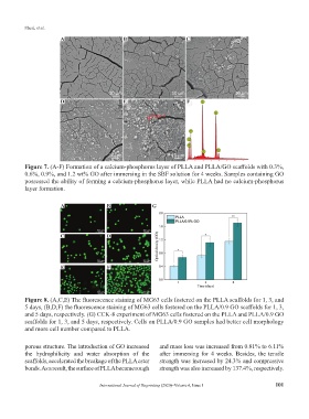 5 days, (B,D,F) the fluorescence staining of MG63 cells fostered on the PLLA/0.9 GO scaffolds for 1, 3,