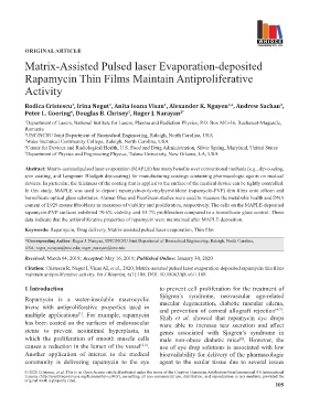 Citation: Cristescu R, Negut I, Visan AI, et al., 2020, Matrix-assisted pulsed laser evaporation-deposited rapamycin thin films