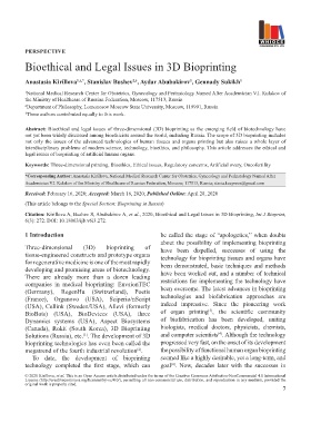Citation: Kirillova A, Bushev S, Abubakirov A, et al., 2020, Bioethical and Legal Issues in 3D Bioprinting, Int J Bioprint,