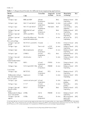 Table 1. Collagen-based bioinks for different tissue-engineering applications.