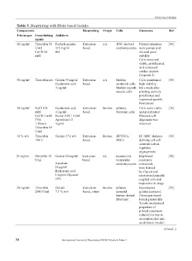 30 mg/ml Thrombin n/a Gelatin 35 mg/ml Extrusion- n/a bladder Cells maintained [94]