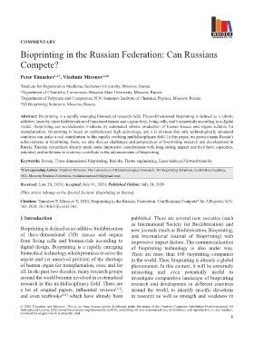 Citation: Timashev P, Mironov V, 2020, Bioprinting in the Russian Federation: Can Russians Compete? Int J Bioprint, 6(3):