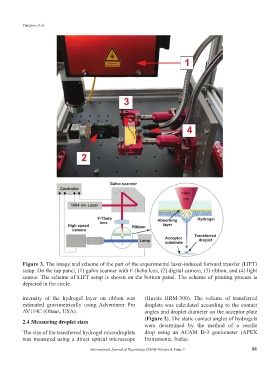 Figure 3. The image and scheme of the part of the experimental laser-induced forward transfer (LIFT)