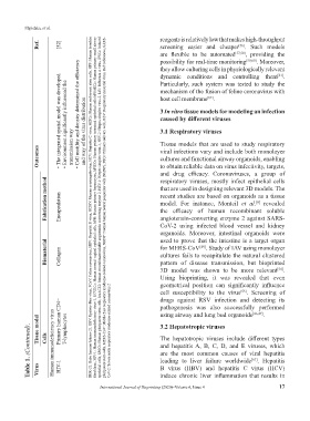 Table 1. (Continued). Tissue model Cells Human immunodeficiency virus Primary human CD4+ HIV-1 T-lymphocytes CoV-2: Severe acute respiratory syndrome-related coronavirus 2 3.2 Hepatotropic viruses [63]