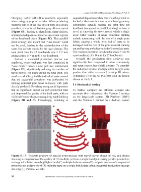 print process and photos of (E) multiple parts on a single build plate using sequential production strategy