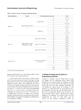 damage model based on the cell damage results of Han 3. Bioink rheology and its effect on