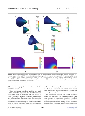 inside the nozzle during extrusion bioprinting (A–C). Numerical results by Chand et al. for