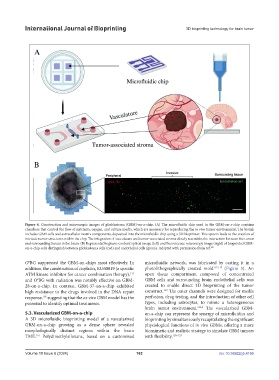 includes GBM cells and extracellular matrix components, deposited into the microfluidic chip using a 3D bioprinter. This system leads to the creation of