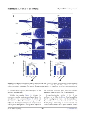 presence of a cartilage matrix in newly formed tissue. The performed on the defect site (Figure 9) and revealed that
