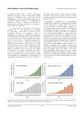 Figure 2. The total annual publications related to bioprinting, wearable sensors, brain-machine interfaces (BMIs), and exoskeleton robots have displayed