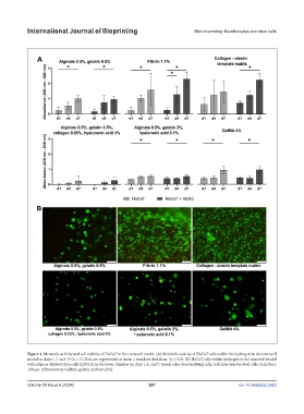 Figure 4. Metabolic activity and cell viability of HaCaT in the transwell model. (A) Metabolic activity of HaCaT cells within the hydrogels in the transwell