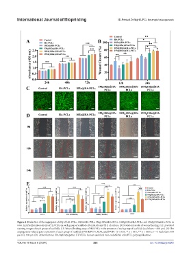 staining images of each group of scaffolds. (D) Wound healing assay of HUVECs in the presence of each group of scaffolds (scale bars = 400 μm). (E) The