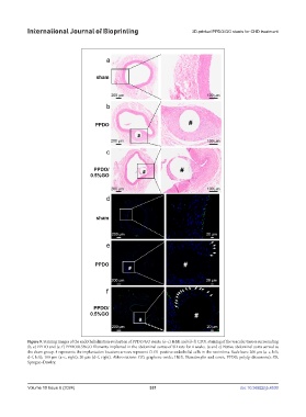d–f, left); 100 µm (a–c, right); 20 µm (d–f, right). Abbreviations: GO, graphene oxide; H&E, Hematoxylin and eosin; PPDO, poly(p-dioxanone); SD,