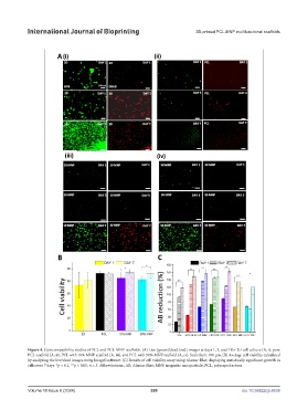 by analyzing the live/dead images using ImageJ software. (C) Results of cell viability assay using Alamar Blue, displaying statistically significant growth in