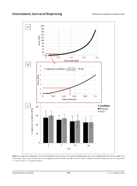 of the elastic region; and (C) Summary of the compressive moduli of bulk material cultured in static or dynamic conditions obtained over a 28-day period.