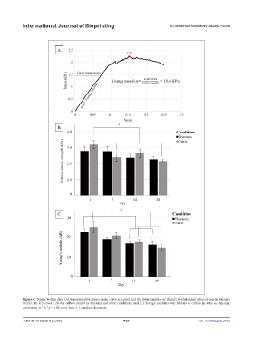 (UTS); (B) UTS over a 28-day culture period in dynamic and static conditions; and (C) Young’s modulus over 28 days of culture in static or dynamic