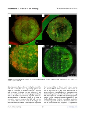 alginate/gelatin/collagen solution was highly compatible the biocompatibility of alginate-based bioinks, making