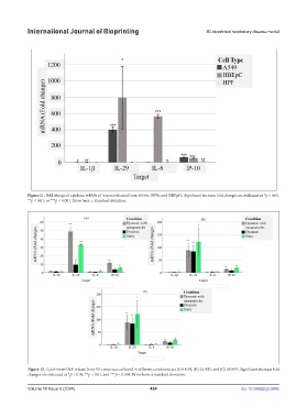Figure 12. Cytokine mRNA release from 3D constructs cultured in different conditions at (A) 6 HPI, (B) 24 HPI, and (C) 48 HPI. Significant increase fold