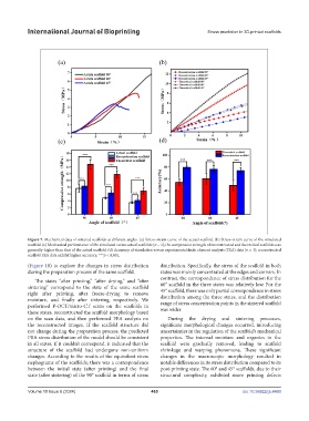 Figure 7. Mechanical data of sintered scaffolds at different angles. (a) Stress–strain curve of the actual scaffold. (b) Stress–strain curve of the simulated