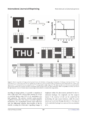 photocurrent response was recorded. (B) Pattern recognition results of Latin letters. The letter combination “THU” was pixelized, encoded, and used as