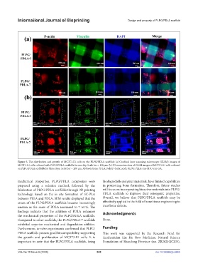Figure 5. The distribution and growth of MC3T3-E1 cells on the PLPG/PDLA scaffolds (a) Confocal laser scanning microscopy (CLSM) images of