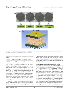 Table 1. Material properties of the finite element (FE) lattice 1 mm/min until the yield point of each sample was reached