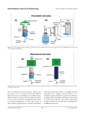 Figure 2. SSE 3D printing extrusion mechanisms: pneumatic extrusion including (A1) valve-free and (A2) valve-based. Adapted with permission from