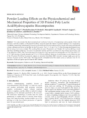 Citation: Custodio CL, Broñola PJM, Cayabyab SR, et al., 2021, Powder Loading Effects on the Physicochemical and