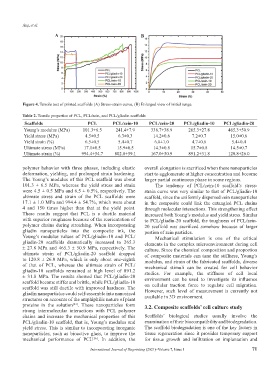 of that of PCL, whereas the ultimate strain of PCL/ mechanical stimuli can be created for cell behavior