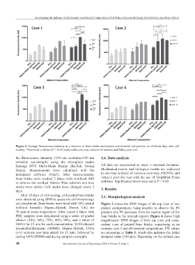 Figure 6. Average fluorescence intensity as a function of bone bricks architecture and material composition for different days after cell