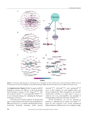 frequent interconnections in all hydrogel blends; (B) two-hydrogel blends, (C) three-hydrogel blends, and (D) four-hydrogel blends.
