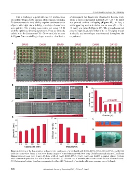 Figure 4. Printing of the dual-sensitive hydrogels inks. (A) Images of printed grids with DA00, DA20, DA40, DA60, DA60, and DA100
