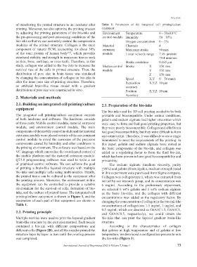 of transferring the printed structure to an incubator after Table 1. Parameters of the integrated cell printing/culture