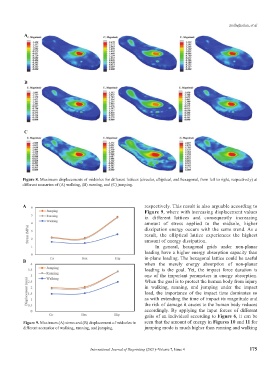 Figure 9. Maximum (A) stress and (B) displacement of midsoles in seen that the amount of energy in Figures 10 and 11 for