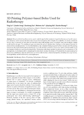 Citation: Lu Y, Song J, Yao X, et al., 2021, 3D Printing Polymer-based Bolus Used for Radiotherapy. Int J Bioprint, 7(4):414.