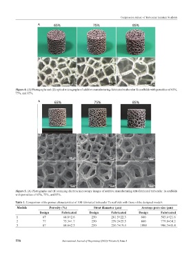 Table 1. Comparison of the porous characteristics of AM-fabricated trabecular Ta scaffolds with those of the designed models