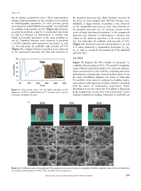 Figure 9. Stress–strain curve and the failed specimen of the distribution inside the trabecular Ta scaffold is illustrated