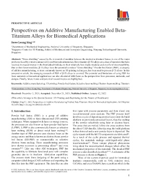 Citation: Sing S L. 2022, Perspectives on Additive Manufacturing Enabled Beta-Titanium Alloys for Biomedical Applications. Int J Bioprint,