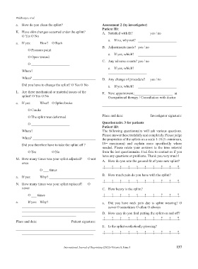 a. How do you clean the splint? Assessment 2 (by investigator)