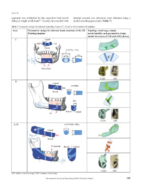 Table 7. Parametric design for internal supporting beam of C, B and A+B reconstructed implants.
