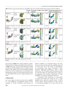 Table 9. Results of finite element simulations of mandibular large defect repaired with solid and parametric reconstruction implants.