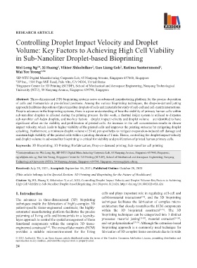 maintain high viability of the printed cells within a printing duration of 2 min. Hence, controlling the droplet impact velocity