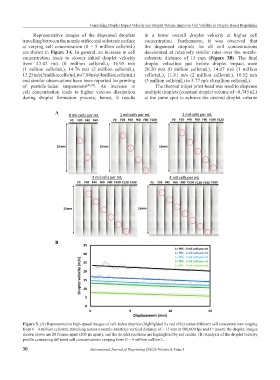 Representative images of the dispensed droplets   in a lower overall droplet velocity at higher cell
