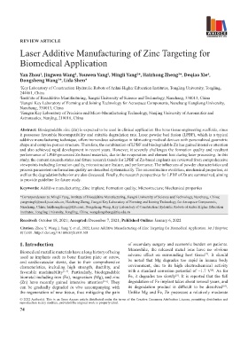 Citation: Zhou Y, Wang J, Yang Y, et al., 2022, Laser Additive Manufacturing of Zinc Targeting for Biomedical Application. Int J Bioprint,